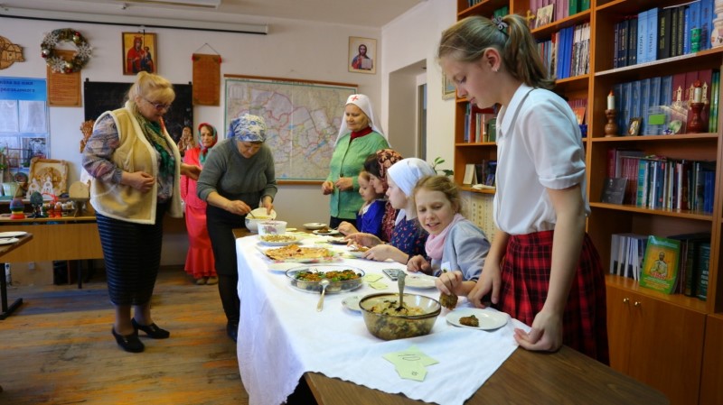 Постные котлеты и плов с кальмарами украсили столы ярмарки постных блюд в воскресной школе Кафедрального собора Андрея Первозванного.Такое мероприятие провели впервые, и день выбрали не случайно – на Благовещенье, когда по церковному уставу ослабляется пост. Приняли участие в выставке и дегустации блюд воспитанники школы, их родители и прихожане храма. Постный стол не показался однообразным: овощные салаты, пловы с оливками и кальмарами, котлеты из чечевицы, фаршированные грибы, выпечка с ягодами. Каждый попробовал блюда, а потом голосованием выбрали самые вкусные. Большинство голосов набрала тыквенная каша на овсяном молоке Людмилы Крупеня, шампиньоны Татьяны Мелешко, плов с кальмарами Елены Рогозиной, котлеты Дарьи Ларивошиной, фрукты с пряностями от воспитанницы школы Полины Степаненко и кисели на овсяном молоке Марины Кращенко. Победителей и участников поздравили, поблагодарили и одарили подарками, а за чаем поделились рецептами.
