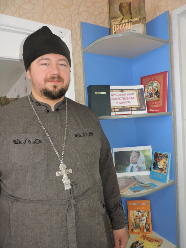 Праздник — День православной книги — появился в нашей стране в 2009 году и проходит не только 14 марта, но в течение первых весенних месяцев, поэтому 4 апреля 2019 года для учащихся 5-х и 6-х классов Баганской СОШ №2 школьным педагогом-библиотекарем Е.И. Черепановой была организована встреча в Детской библиотеке с настоятелем храма во имя святых страстотерпцев, благоверных князей Бориса и Глеба иереем Димитрием Мжельским.