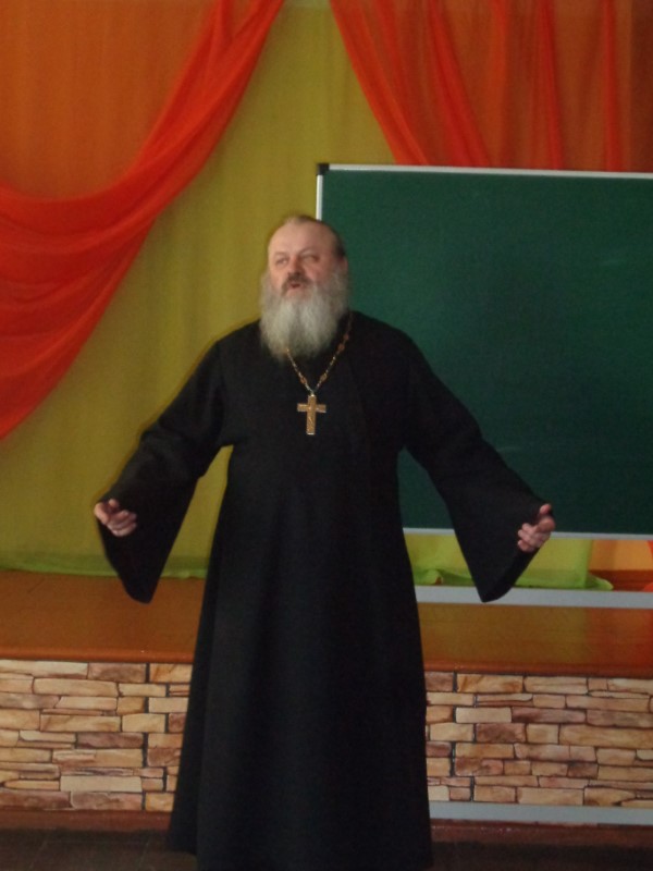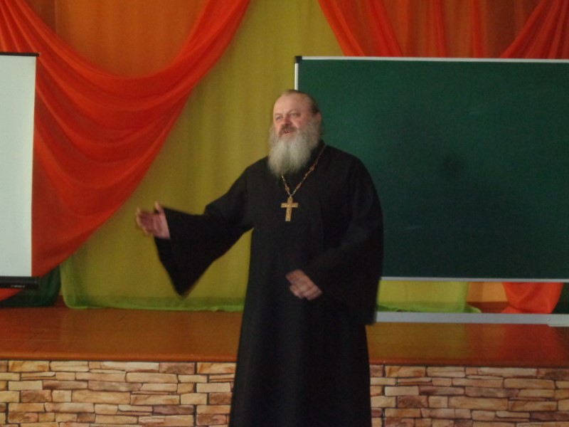 Батюшка вкратце рассказал присутствующим о православной истории нашего государства, напомнил, что в основном мы все, и родители и дети, крещеные в православии, рассказал о пользе изучения ОПК, напомнил об ответственности пред Богом, используя при этом все методы ораторского искусства.