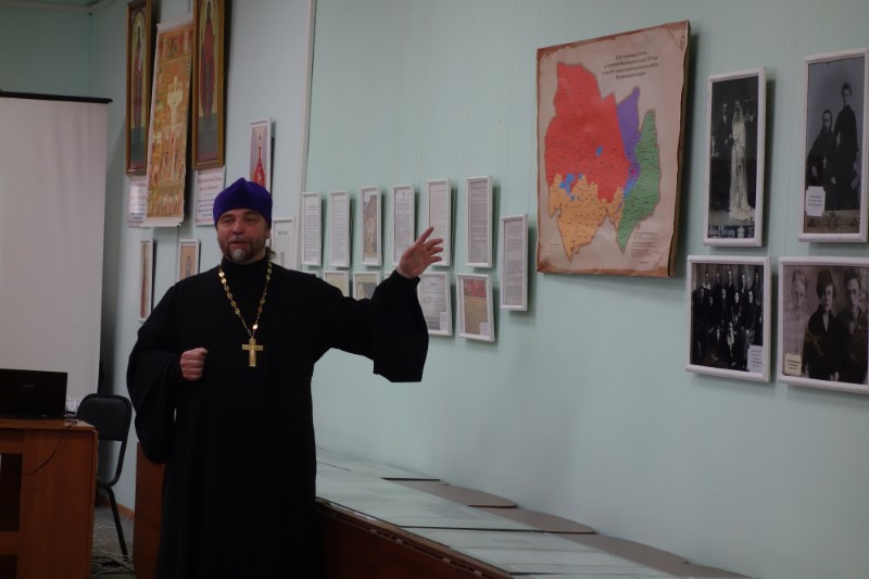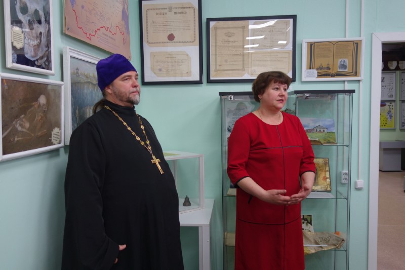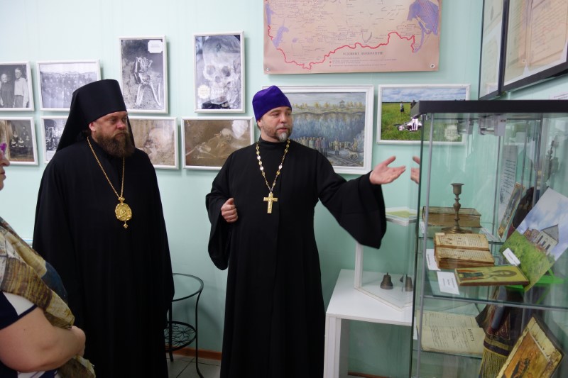 На открытие выставки был приглашен протоиерей Игорь Затолокин, благочинный Северного епархиального округа Искитимской епархии. По благословению Владыки Филиппа для ее экспозиции батюшка привез из фонда приходского музея, который создается при храме в честь Новомучеников и Исповедников земли Русской на святом источнике в микрорайоне Ложок, личные вещи и архивные документы священномучеников Николая и Иннокентия, пресвитеров Новосибирских; музей расскажет о гонениях на Церковь в XX веке и о штрафном лагере и его узниках, содержащихся на территории Новосибирской области.