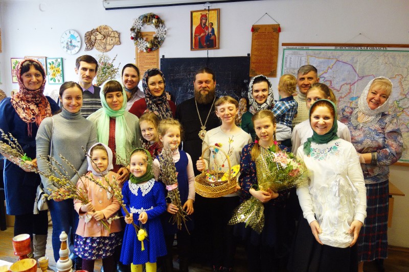 21 апреля/воскресение. В день празднования Входа Господня в Иерусалим Его Преосвященство епископ Филипп встретился с преподавателями, родителями и детьми воскресной школы при Кафедральном соборе г. Карасука.