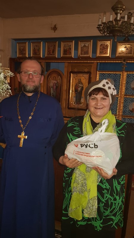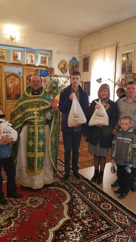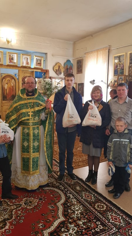 По завершении праздничного богослужения батюшка раздал прихожанам пакеты «Народные обеды» — из акции «Накормить может каждый».