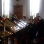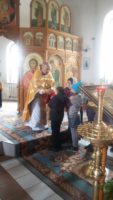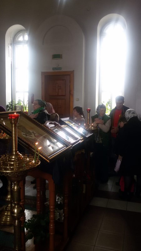 В данный момент в храме находятся мощи святых, прибывшие накануне, в субботу, с Епархиальным крестным ходом..