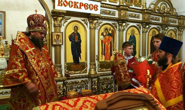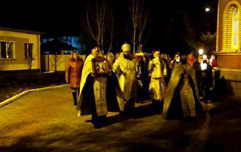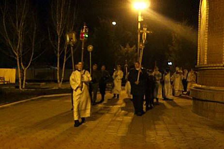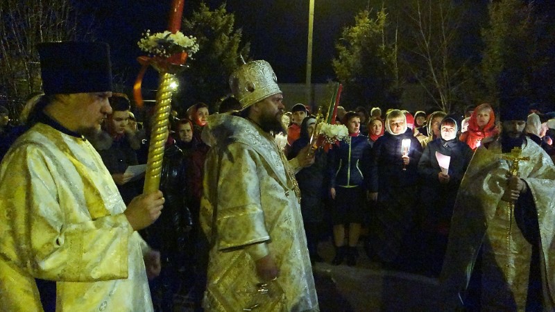 В ночь с 27-го на 28-ое апреля Его Преосвященство епископ Филипп возглавил крестный ход, пасхальную заутреню и Божественную литургию в Кафедральном соборе св. апостола Андрея Первозванного г. Карасука. Ему сослужили секретарь Карасукской епархии иерей Антоний Баранов и иеромонах Сергий (Виноградский).