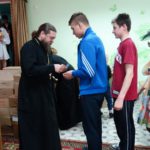 Этот момент дети ждут больше всего: для них самое большое счастье, когда на них попадёт как можно больше святой воды. В завершение праздника Владыка вручил всем крашеные яйца, сладкие подарки и иконы. Воспитанники школы просили Владыку не забыть взять их и в этом году в Православный детский лагерь.