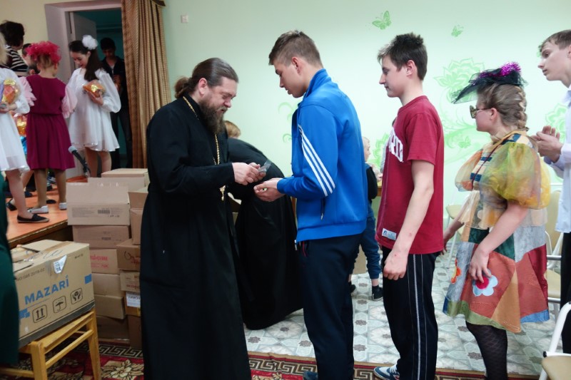 Перед началом представления Владыка обратился к детям и поздравил их и директора школы Косачева Василия Васильевича с праздником Светлой Пасхи. После концерта Владыка по традиции задал воспитанникам вопросы о светлом празднике Воскресении Христовом, о добрых традициях Святой Пасхи — дарить друг другу крашеные яйца и творить в эти праздничные дни дела милосердия, а также прочитал вместе с ними молитву «Отче наш» и окропил всех святой водой.