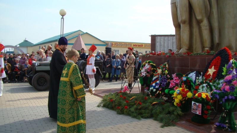 Затем иеромонах Мелхиседек (Свистелин), благочинный Центрального округа Карасукской епархии, с прихожанами храма принял участие в митинге, посвященном Дню Великой Победы. У мемориала Героям фронта и тыла была совершена лития по усопшим воинам. Батюшка поздравил ветеранов и всех собравшихся с праздником Великой Победы.