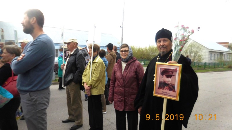 Протоиерей Александр Лупарев принял участие в акции Бессмертного полка. Его отец воевал с 1942-го по 1945-й г. Три раза был ранен. С пулей и осколками в голове прожил всю жизнь.