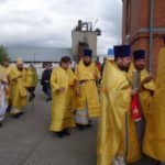 По отпусте под колокольный звон был совершен крестный ход вокруг храма. И затем состоялось славление перед иконой святого апостола и евангелиста Иоанна Богослова.