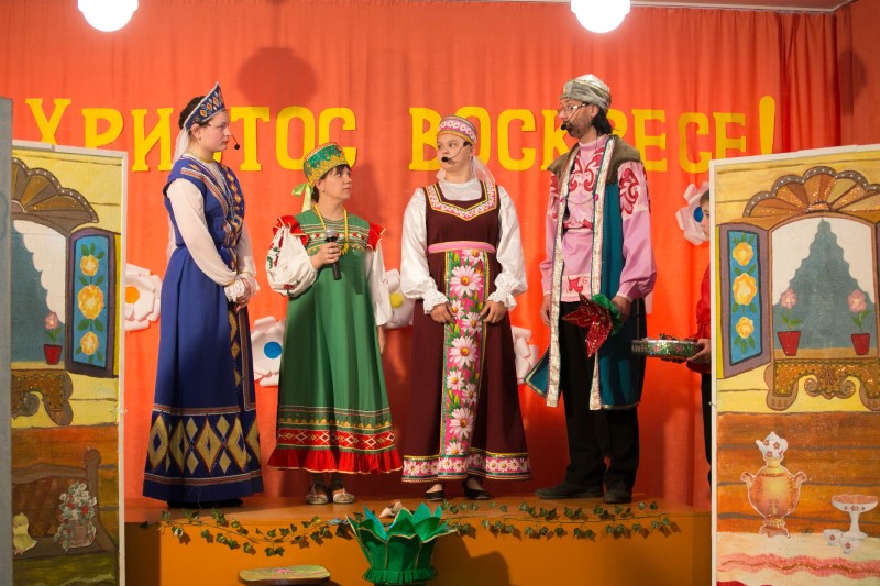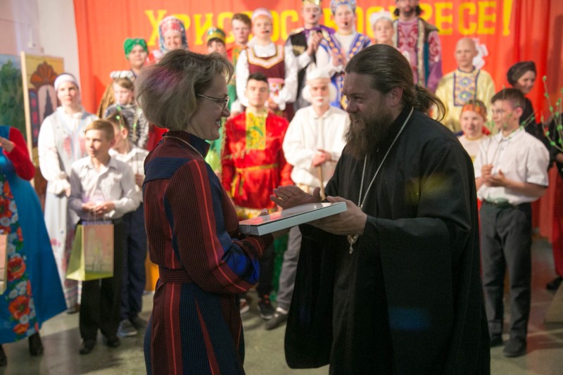 Воспитанники школы как всегда с большой радостью встретили обоих Владык и сразу пригласили их на свой пасхальный концерт, подготовленный их собственными силами. Они и пели, и танцевали, и читали стихи, и даже представили театральную сценку на пасхальную тему. И чувствовалось, как они со сцены излучают искреннюю радость, дарят ее своим зрителям.