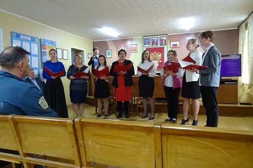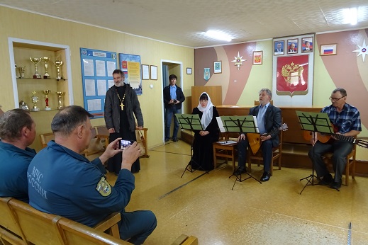 Перед сотрудниками МЧС выступили музыкальный коллектив «София» под управлением Анны Михайловны Апостол, руководителя Ордынского Дома культуры, и фольклорный ансамбль «Сретение» под управлением Вячеслава Владимировича Асанова, члена Союза композиторов России.