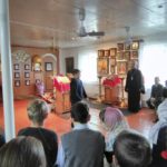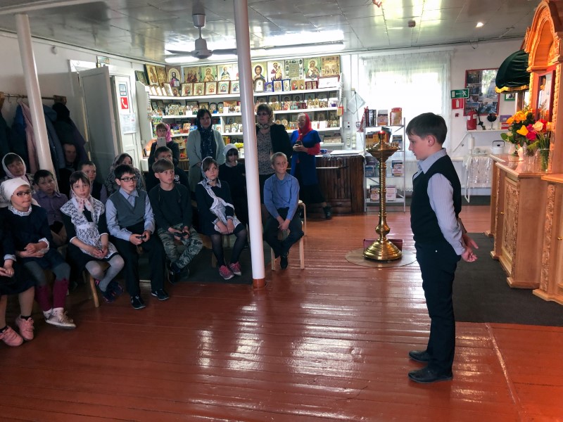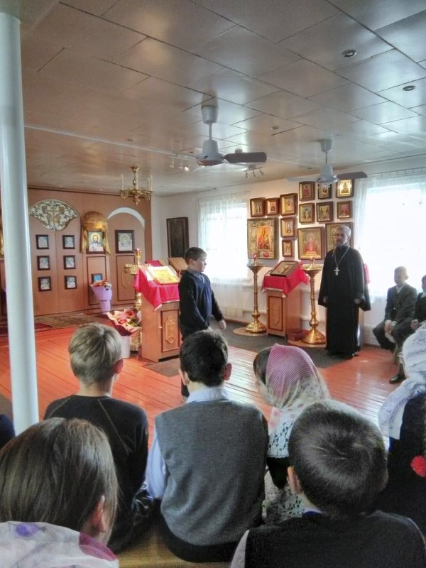 Настоятель прихода протоирей Алексей Лебедев показал и рассказал ребятам о Церкви, о значении культурного наследия Отечества. Ученики готовились заранее и на встрече выступили с замечательным чтением стихов о православной вере.