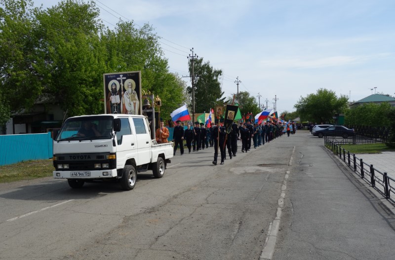 По окончании богослужения состоялся крестный ход по г. Карасуку, посвященный Дню славянской письменности и культуры, который прошел от Кафедрального собора по центральной улице города мимо обелиска Победы до строящегося нового храма во имя святого равноапостольного великого князя Владимира.