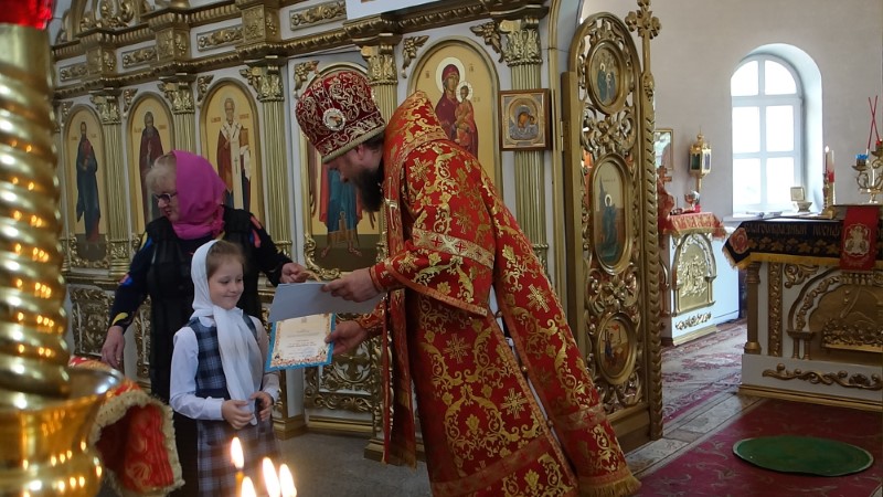 Самым ее активным ученикам были вручены благодарственные Архиерейские грамоты, а всем остальным детям — сладкие подарки.