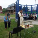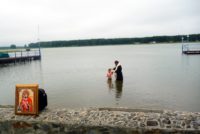 Рано утром епископ Филипп вместе с детьми из православного детского лагеря пришел на берег Обского моря, и хотя Таинство Крещения принимали только два человека, на берег моря отправились все дети православного лагеря, ведь поприсутствовать на Таинстве Крещения, проходящем в таком экзотичном месте, под бездонным голубым небом, пожелали буквально все.