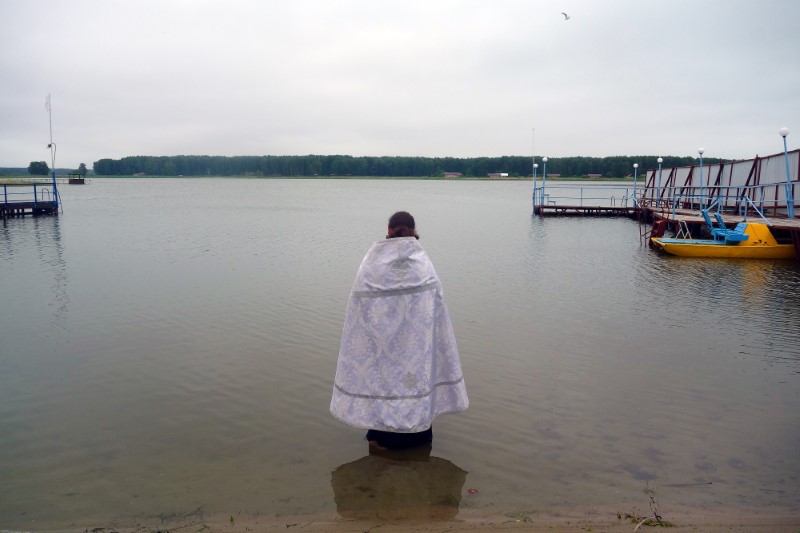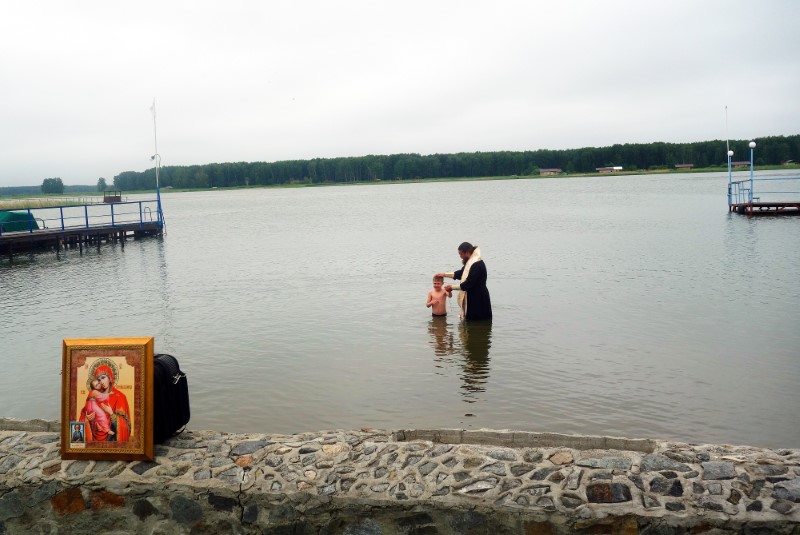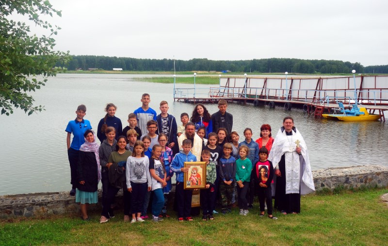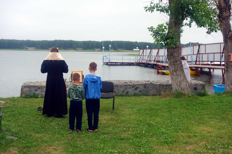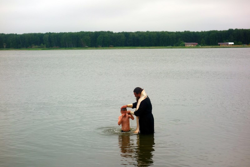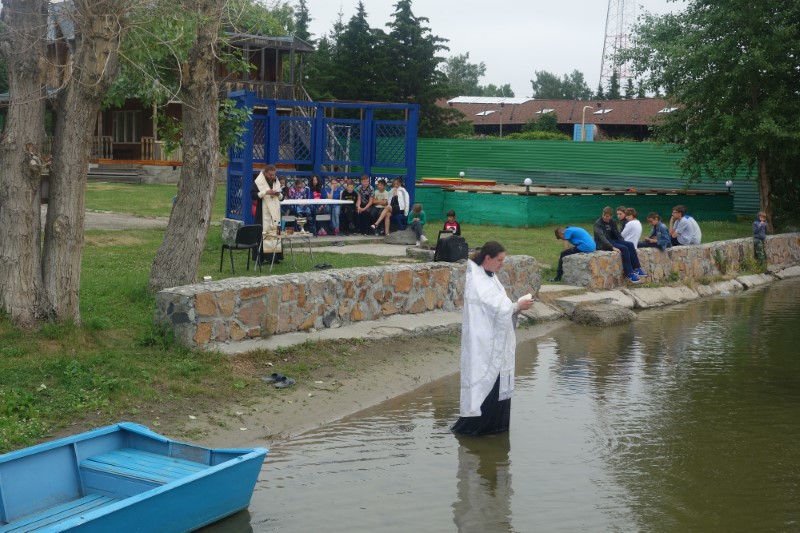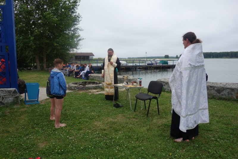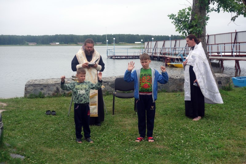 28 июня/пятница. В православном детском лагере во имя Архистратига Михаила — особый день. Сегодня по традиции было совершено Таинство Крещения детей в Обском водохранилище.