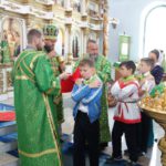 30 июня/воскресение. В Неделю всех святых в земле Русской, просиявших, Его Преосвященство епископ Филипп возглавил детскую Божественную литургию в соборе в честь Живоначальной Троицы р. п. Ордынское.