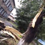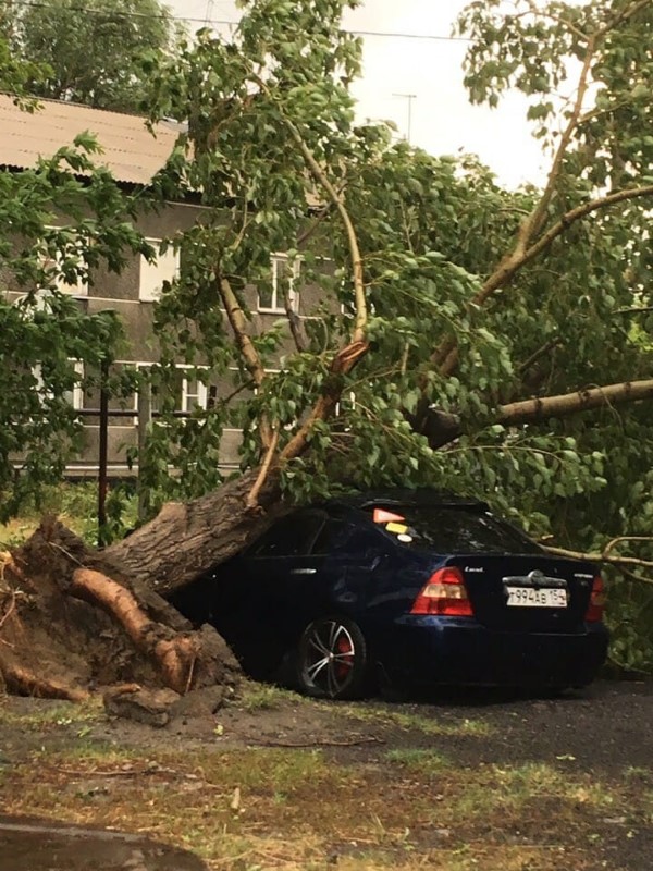 Ветер сорвал крышу политехнического лицея на улице Ленина, вырвал с корнем деревья. Некоторые из них рухнули на автомобили. Огромные ветки улетели на линии электропередач и порвали их, упали некоторые столбы: из-за этого на некоторых улицах Карасука нет света.