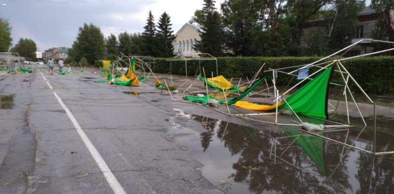 В центре города готовились к ярмарке — ветер разметал все палатки. Теперь в Карасуке предстоит устранять последствия шторма.