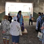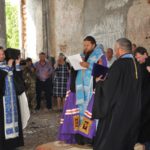 Владыка окропил стены храма святой водой и выразил надежду, что, может быть, когда-нибудь в будущем он будет восстановлен.