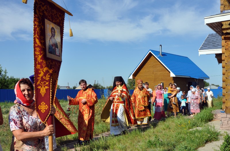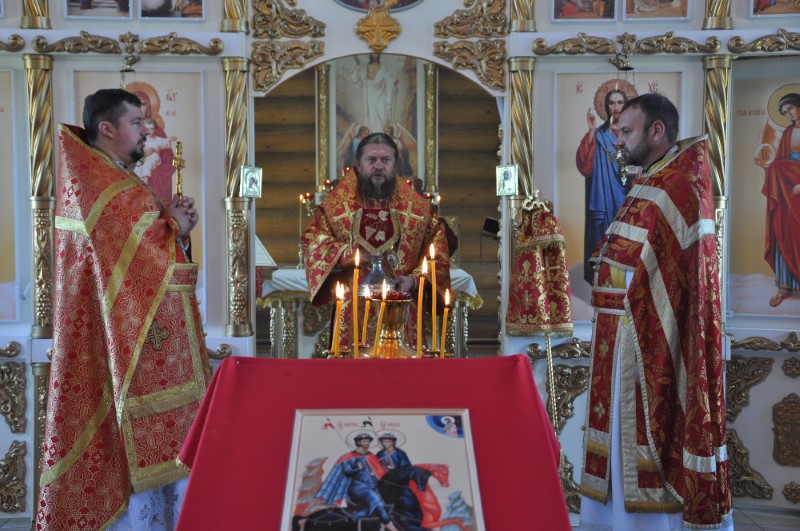 По окончании Литургии состоялся праздничный молебен мчч. блгвв. кнн. Борису и Глебу и под колокольный звон прошел крестный ход с хоругвиями и песнопениями вокруг храма.