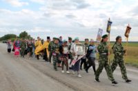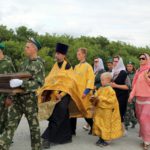 Там прихожане и его жители совершили крестный ход по селу к месту строительства храма в честь Казанской иконы Пресвятой Богородицы, где был отслужен молебен.