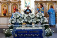 28 августа/среда. В день празднования Успения Пресвятой Богородицы Его Преосвященство епископ Филипп возглавил Божественную литургию в соборе в честь Живоначальной Троицы р. п. Ордынское, ему сослужил настоятель собора иерей Константин Карамышев.