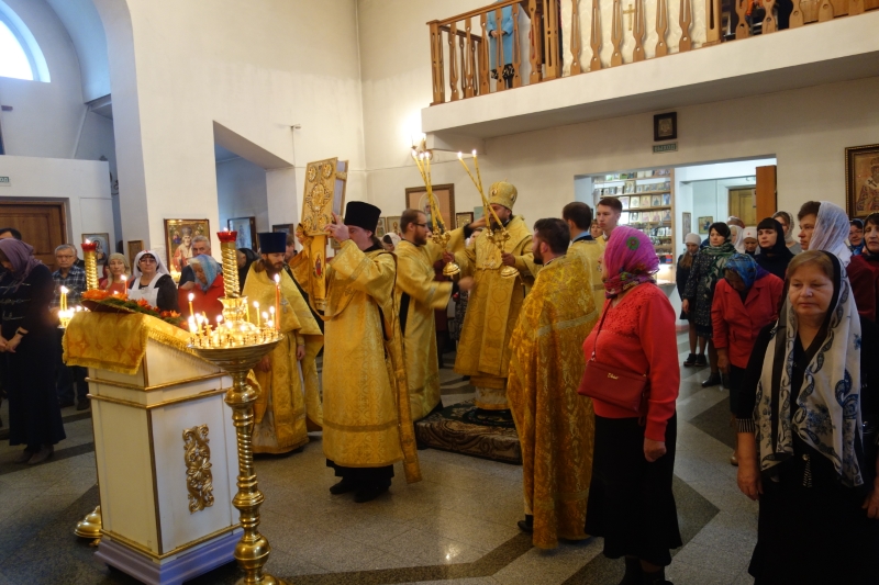В воскресной проповеди по окончании Литургии Владыка поздравил всех с праздником. И напомнил, что для верных Крест Господень есть то самое знамя и знамение Божия торжества, которое предвещали древние пророки. Сиянием Божественной любви озарил падший мир Светоч Креста. Великое счастье для нас — жить в мире, искупленном этой жертвенной любовью Божией. Великое блаженство — знать, как много возлюбил нас Господь, изливший ради нашего спасения Свою Пречистую Кровь.