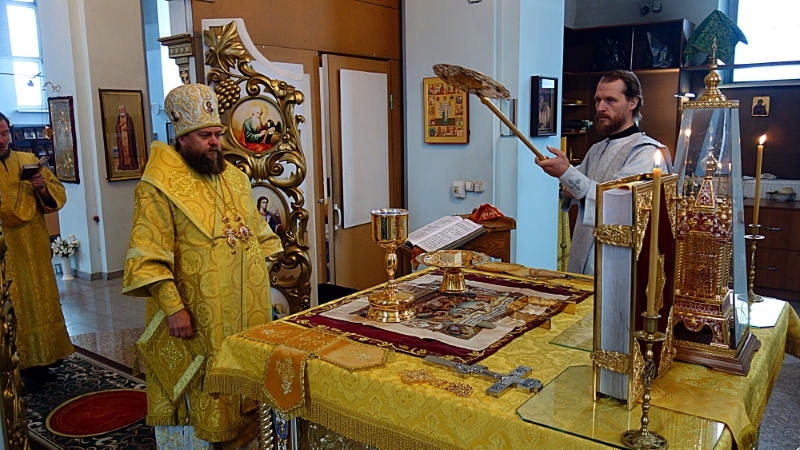 За литургией состоялась дьяконская хиротония чтеца Анатолия Гольтмана. В святительском слове по окончании Литургии Владыка поздравил всех с праздничным днем, напомнив, что сегодня Святая Церковь отмечает день памяти Святителей Московских. Правящий архиерей пожелал молящимся, чтобы дух ревности наполнял их сердца, возгревая в них желание благоугождать Богу.
