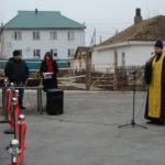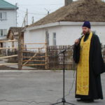 Иеромонах Мелхиседек по возложении цветов к памятнику совершил литию по всем пострадавшим в годы гонений землякам и затем обратился к собравшимся со словом назидания.