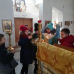 19 ноября/вторник. Учащиеся 5-го класса технического лицея №176 посетили Кафедральный собор во имя святого апостола Андрея Первозванного г. Карасука. Секретарь Карасукской епархии иерей Антоний Баранов рассказал им об истории возникновении собора и о том, чем отличается собор от обычного храма.Батюшка также рассказал об устройстве храма и пояснил для кого и как верующие ставят свечи.