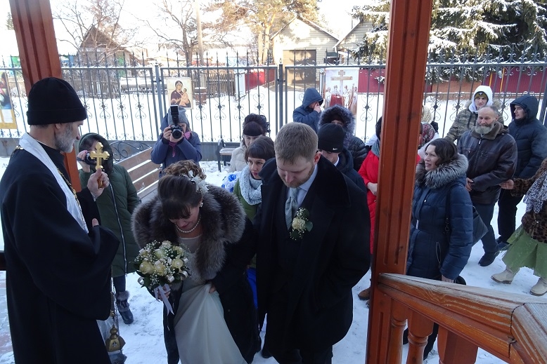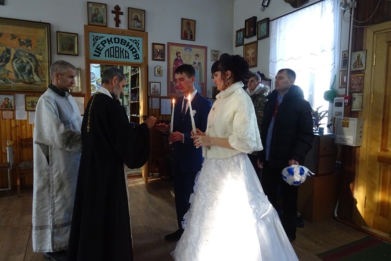 Затем состоялось Таинство Венчания и молодые проехали по святым местам рабочего поселка Ордынское.