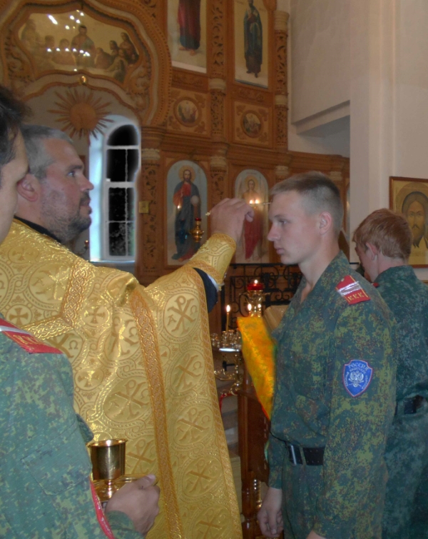 По обычаю воскресного дня в храме в честь Успения Пресвятой Богородицы р.п. Чистоозерное было совершено всенощное бдение и Божественная литургия.Кадеты Православного военно-патриотического объединения казачьей молодежи «Гвардия» по окончании военно-полевых сборов приняли участие в воскресном богослужении, что является благочестивой традицией Русского казачества.