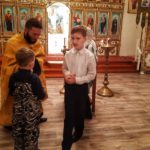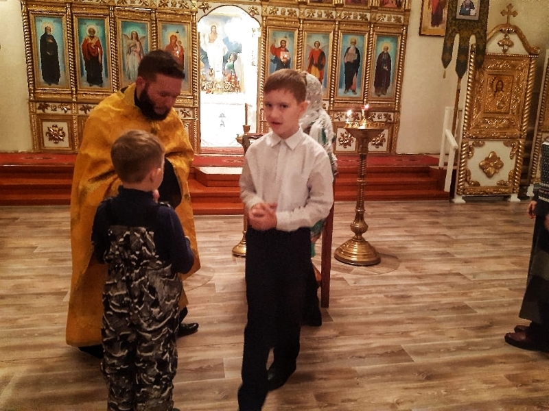 По завершении Литургии начались занятия воскресной школы, где иерей Андрей рассказал о разных видах Литургии: свт. Иоанна Златоуста, свт. Василия Великого, свт. Григория Двоеслова, папы Римского, и древнейшего чина Литургии ап. Иакова, брата Господня, первого епископа Иерусалима.
