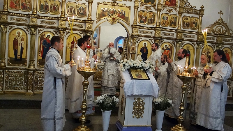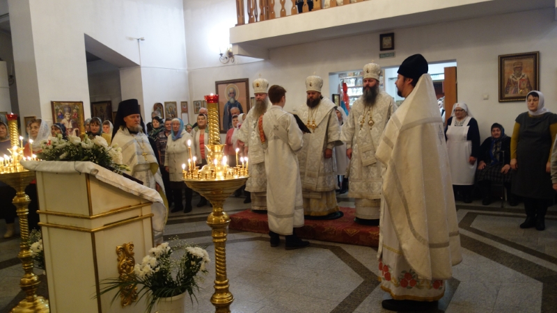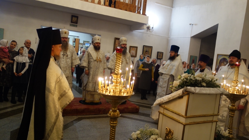 По завершении проповеди Владыка Лука поздравил Владыку Филиппа, духовенство Карасукской епархии и прихожан собора с престольным праздником и пожелал им духовной радости, благоденствия епархии и щедрой помощи Божией во всех их благих делах.