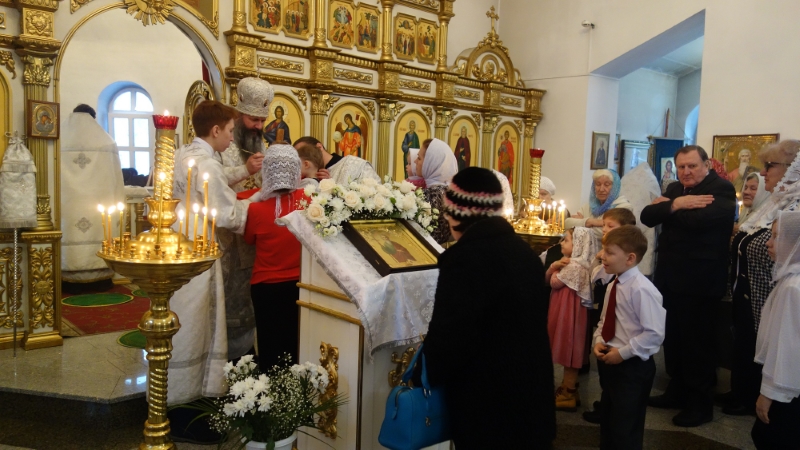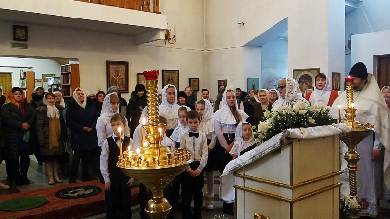 Дети воскресной школы под руководством ее директора Жанны Васильевны Пономаренко, волнуясь от торжественности события, поздравили в стихах всех с престольным праздником. Это было так трогательно!