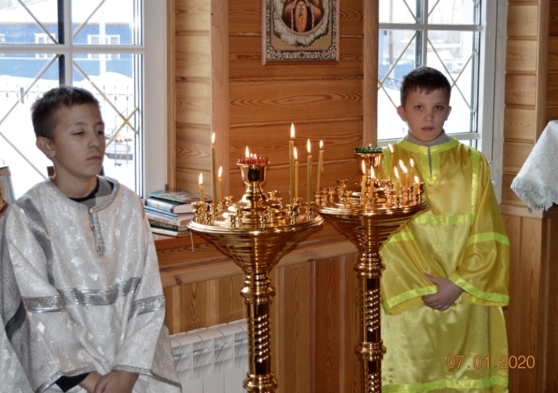 После Божественной литургии в храме во имя св. муч. Иоанна Воина с. Ивановки Баганского района дети, посещающие воскресную школу, поздравили настоятеля храма и всех прихожан с праздником, устроив маленькое представление. Иеромонах Мефодий (Сиваков) благословил каждого ребенка и подарил всем подарки от прихода.