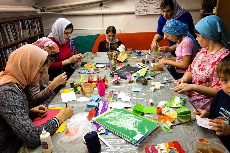 В этом году все украшения были сделаны руками прихожан. Это занятие всех весело увлекло и позволило нарядить елку необычайно красиво – все на нее смотрят и смотрят, смотрят и рассматривают… Сами изготовили все костюмы и декорации для рождественского спектакля и концерта и приготовили угощения.