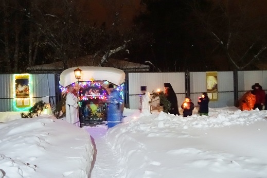 7 января/вторник. В 00.00 в Никольском храме р. п. Ордынское началась праздничная Рождественская Литургия, за которой были прочитаны послания Патриарха Московского и всея Руси Кирилла, митрополита Новосибирского и Бердского Никодима и епископа Карасукского и Ордынского Филиппа.После крестного хода вокруг храма с пением праздничных тропаря и кондака праздник продолжился в трапезной за обеденным столом.