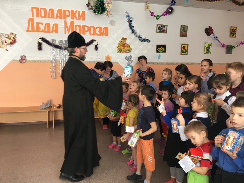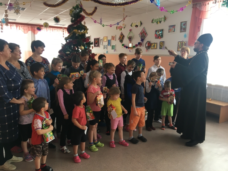 13 января, в день отдания праздника Рождества Христова, иерей Евгений Зверев посетил МКУ «Социально-реабилитационный центр для несовершеннолетних» в с. Лобино Краснозерского района, где проходят социальную реабилитацию дети со всей Новосибирской области. Батюшка поздравил воспитателей и детей с праздником, рассказал об истории праздника Рождества, подарил каждому ребенку иконочку, а также вручил детям сладкие подарки и игрушки и окропил всех святой водой.