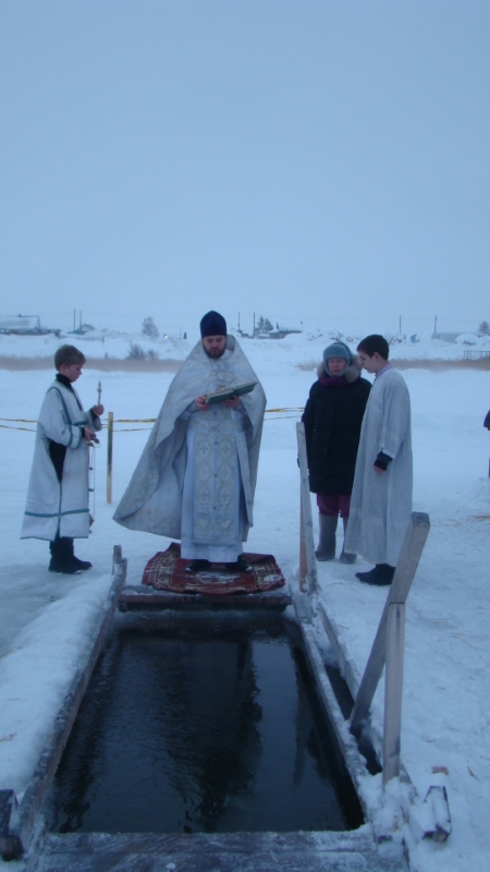 В 11.00 по традиции было совершено Великое освящение воды в проруби деревни Мальково, на озере Яркуль.