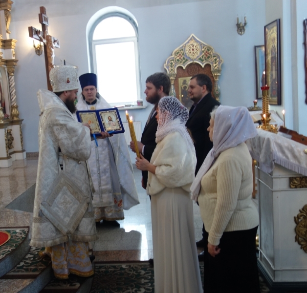 После Божественной литургии епископ Филипп совершил Таинство Венчания. Венчались прихожане храма Руслан и Юлия.