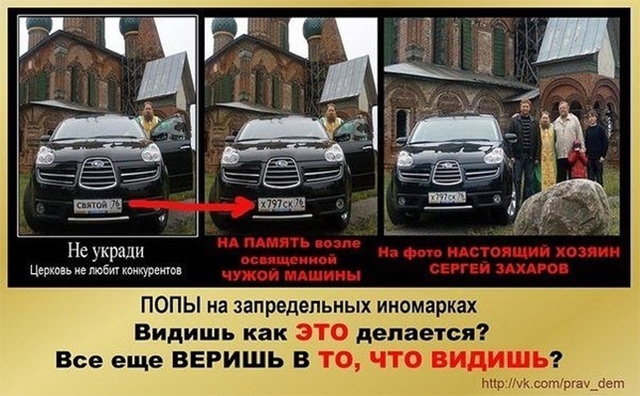 На вопрос о “толстых попах на мерседесах” отвечали уже многие православные публицисты, но напомним и мы. Зачастую, богатые машины священников – это просто растиражированный фейк, как например вот этот: