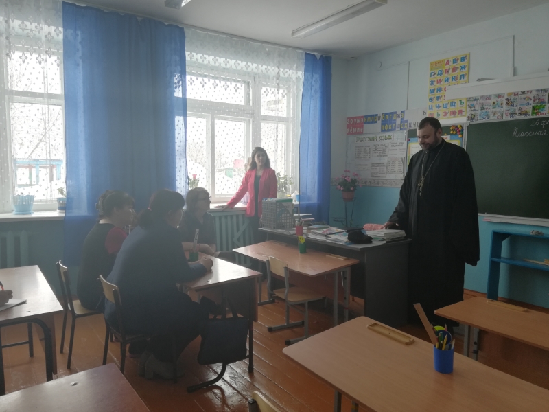 26 февраля иеромонах Мелхиседек (Свистелин), благочинный Центрального округа, руководитель Отдела религиозного образования и катехизации Карасукской епархии, и иерей Атоний Баранов, секретарь Карасукского Епархиального управления, посетили следующие школы Карасукского района: МБОУ Павловскую СОШ, МБОУ Новоивановскую СОШ, МБОУ Октябрьскую СОШ, МБОУ Калачинскую СОШ, МБОУ Рассказовскую СОШ и МБОУ Михайловскую СОШ.