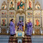В архипастырском слове по завершении богослужения Владыка поздравил прихожан храма с праздничным днем и пояснил, что празднование обретения мощей блаженной Матроны Московской перенесено с 8-го на 7-ое марта в связи с празднованием в первое воскресение Великого поста — Торжества Православия.