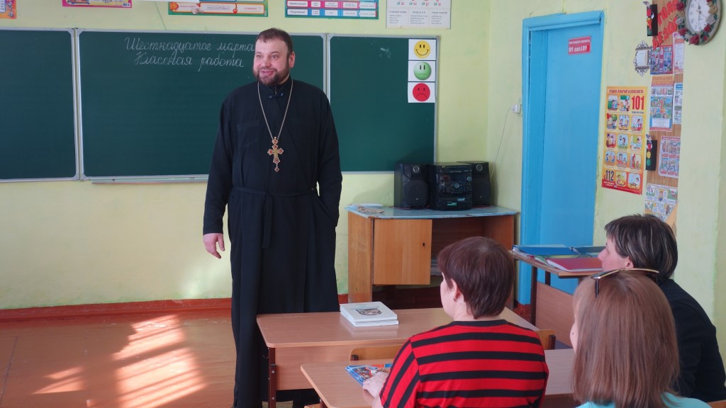 16 марта/понедельник. Епископ Филипп, иеромонах Мелхиседек (Свистелин), благочинный Центрального округа и руководитель Отдела образования Карасукской епархии, и ее секретарь иерей Антоний Баранов посетили родительские собрания в школах 4-х сел Карасукского района: Студеного, Поповки, Троицкого и Сорочихи и в 2-х школах г. Карасука: МБОУ СОШ №4 и МБОУ СОШ №5, где прошла встреча с учителями и родителями по выбору предмета «Основы православной культуры» из учебного курса «Основы религиозных культур и светской этики».