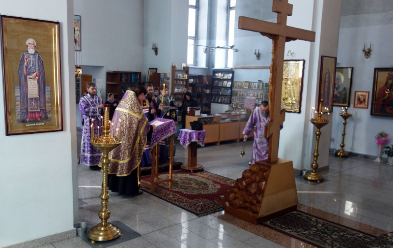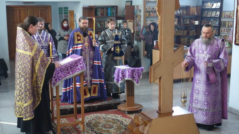 Его Преосвященство епископ Филипп возглавил чин Пассии с чтением акафиста Страстям Христовым, ему сослужил настоятель собора иерей Константин Крамышев.