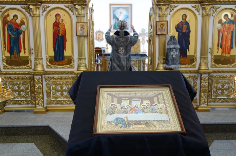 По окончании Божественной литургии Его Преосвященство обратился с архипастырским словом к прихожанам собора, поздравил всех с принятием Святых Христовых Таин и рассказал о тех евангельских событиях, о которых сегодня было прочитано за богослужением, особо отметив важность участия православных христиан в Таинстве Евхаристии, которое более 2000 лет назад во время своей земной жизни установил Сам Господь Иисус Христос на Тайной Вечере в Иерусалиме в преддверии Своих крестных страданий. Это Таинство Он совершил вечером, поэтому и Литургия сегодня была соединена с вечерней.