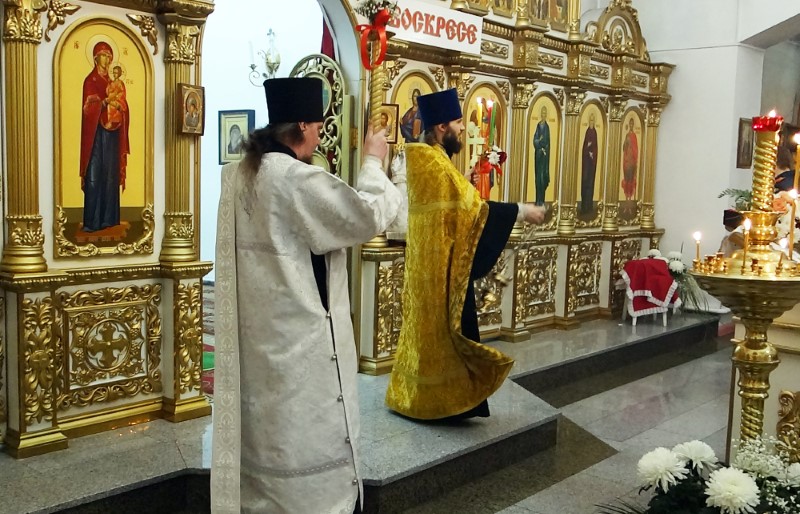 За Литургией были оглашены Пасхальные послания Святейшего Патриарха Московского и всея Руси Кирилла и Высокопреосвященного Никодима, митрополита Новосибирского и Бердского.