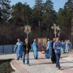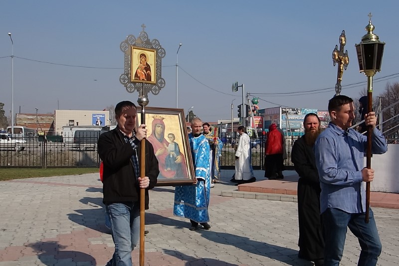 По окончании Литургии состоялся молебен с Акафистом перед иконой Божией Матери «Иверская», затем состоялся крестный ход вокруг собора.